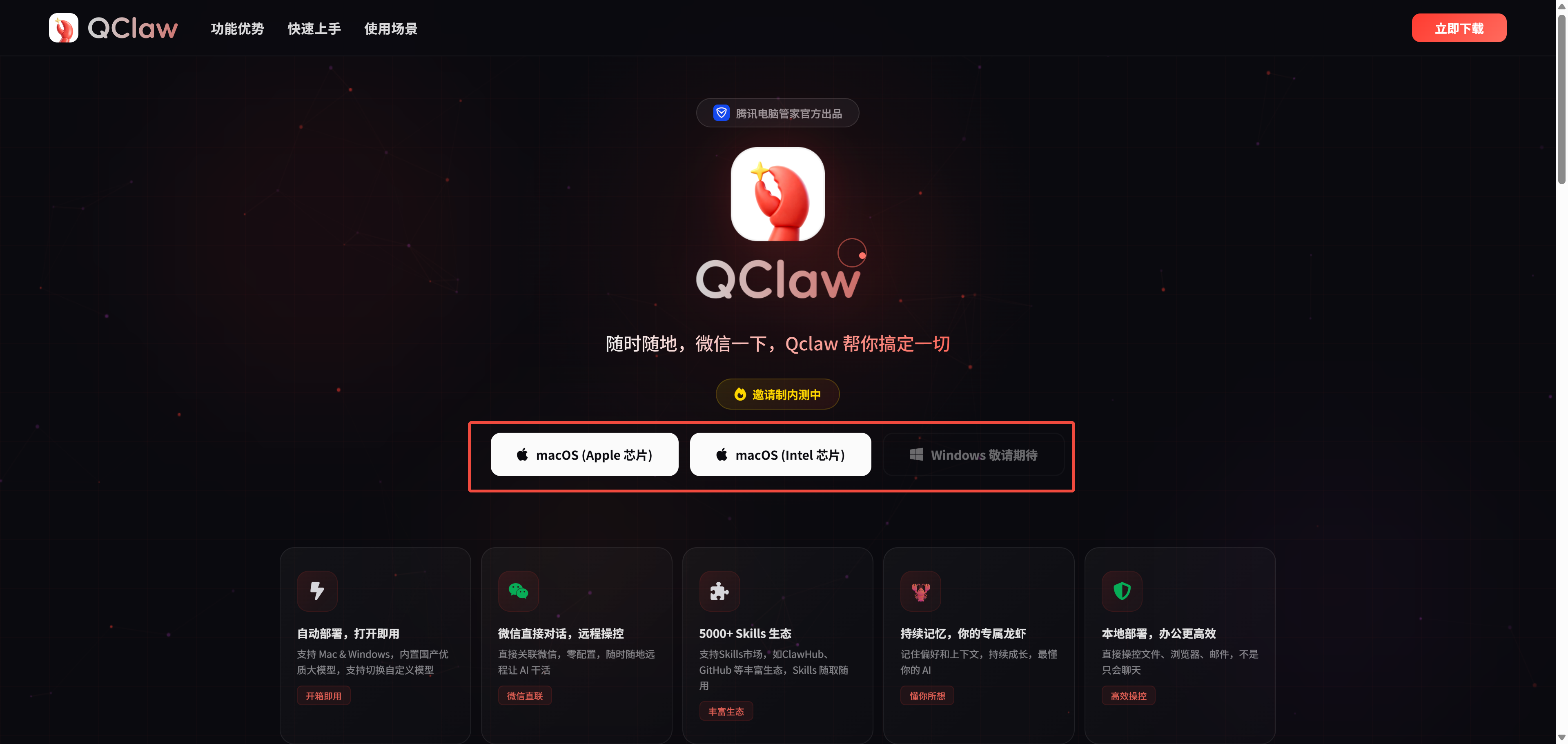 第一步:访问Qclaw 官方:https://qclaw.qq.com/
