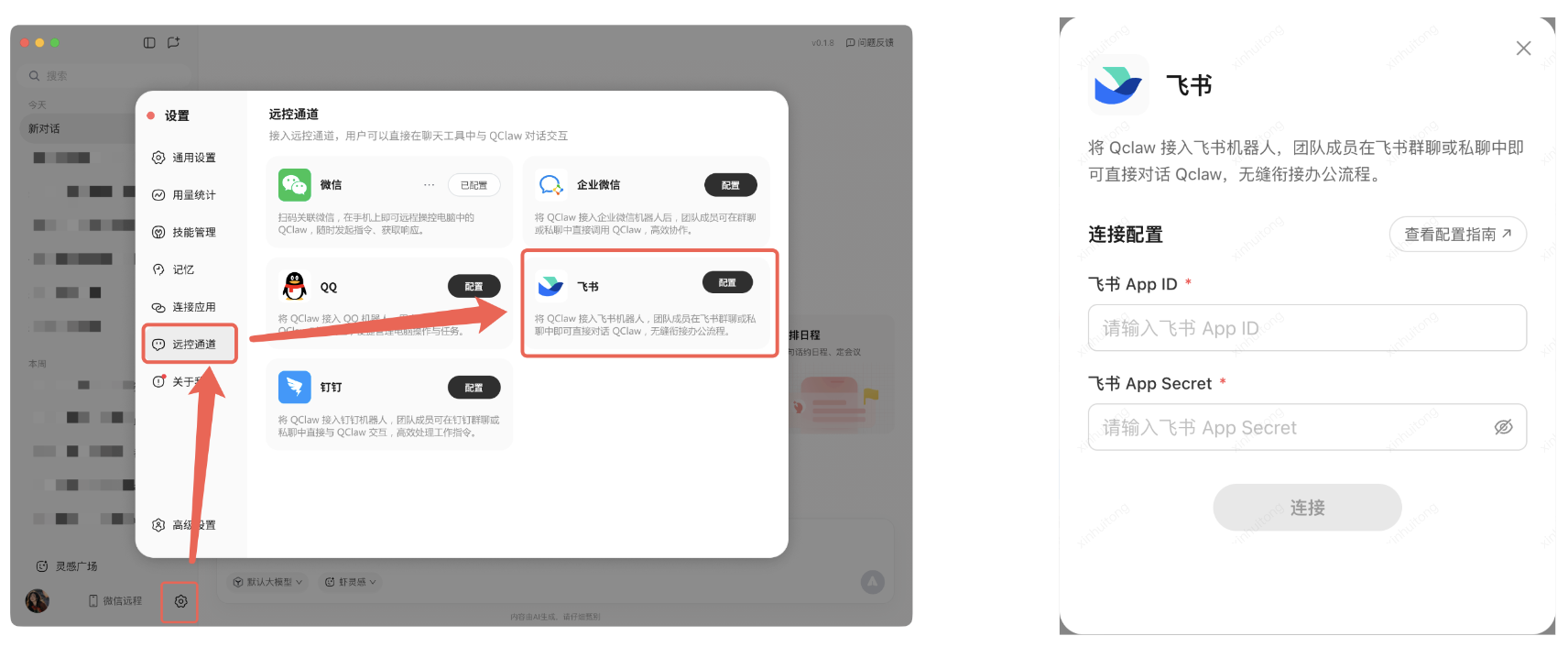 2、关联飞书与QClaw