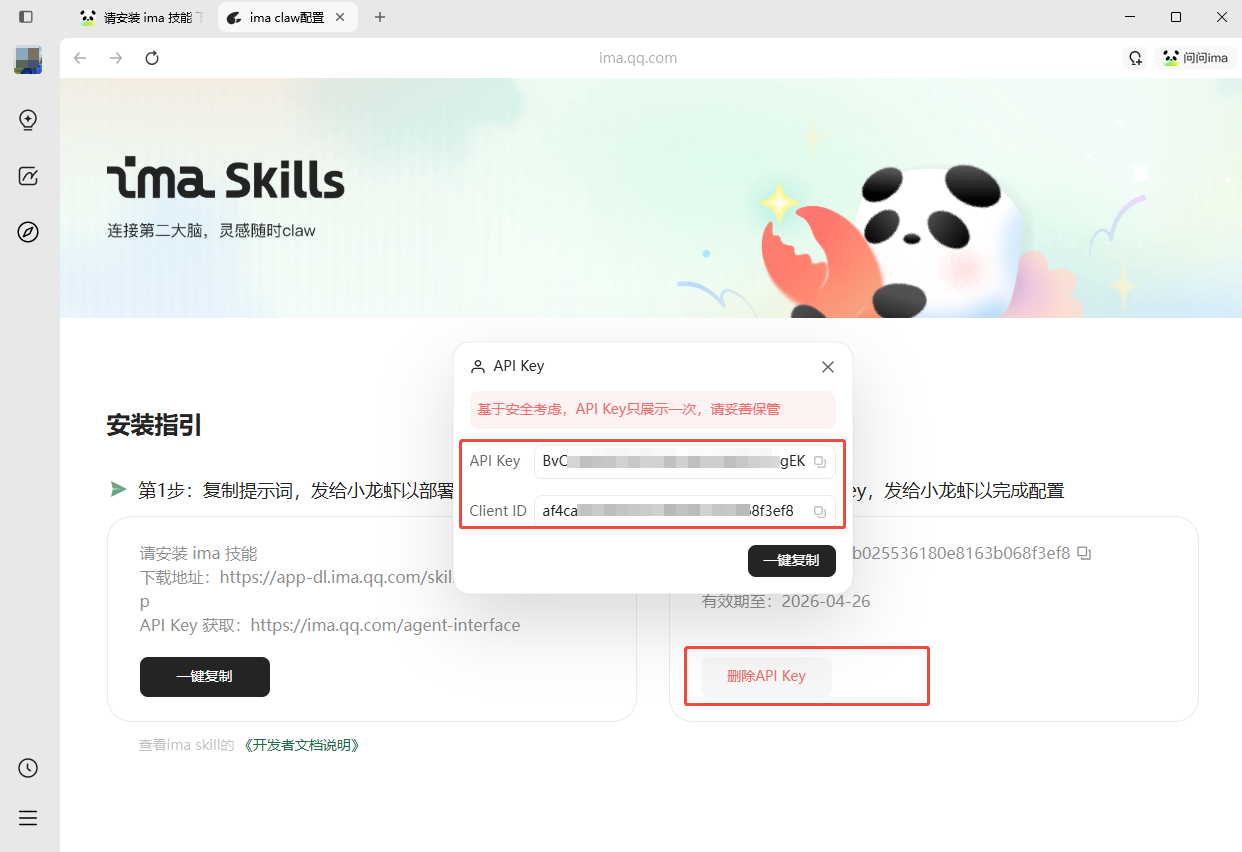 本指引将帮助您获取ima的API Key,以便于完成与QClaw的连接
