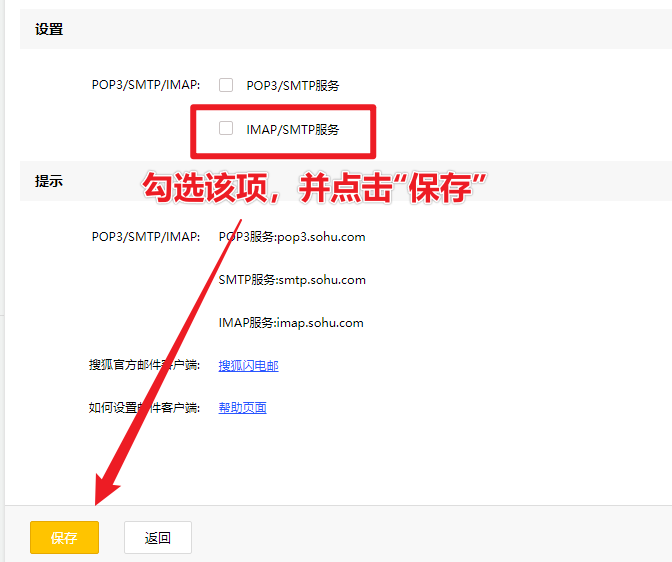 (2)然后,勾选 【IMAP/SMTP服务】 选项以启用该功能